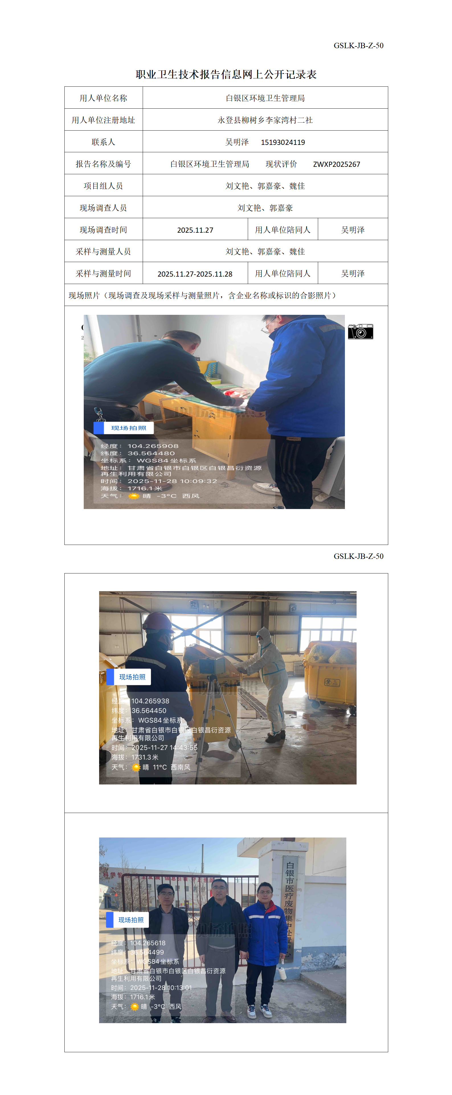白银区环境卫生管理局职业病危害现状评价信息公示表