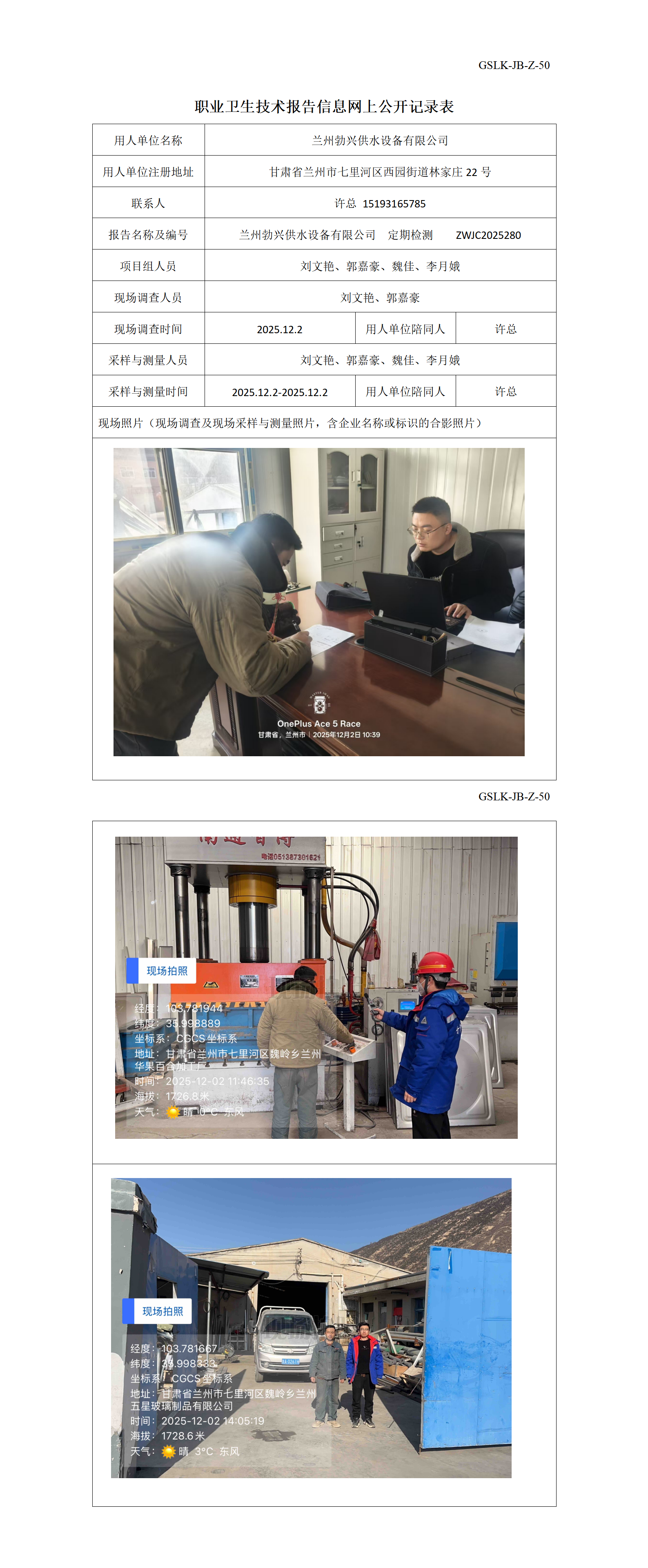 兰州勃兴供水设备有限公司定期检测信息公示表