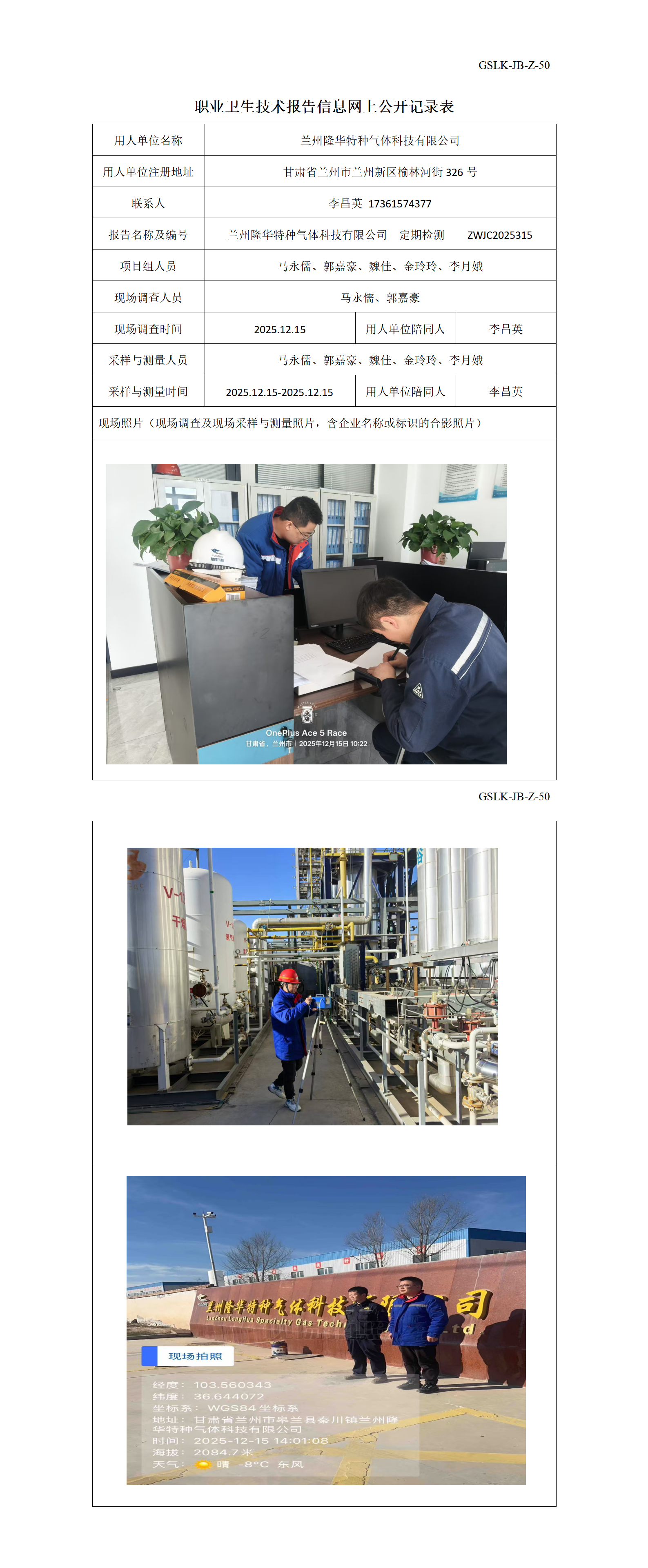 兰州隆华特种气体科技有限公司定期检测信息公示表