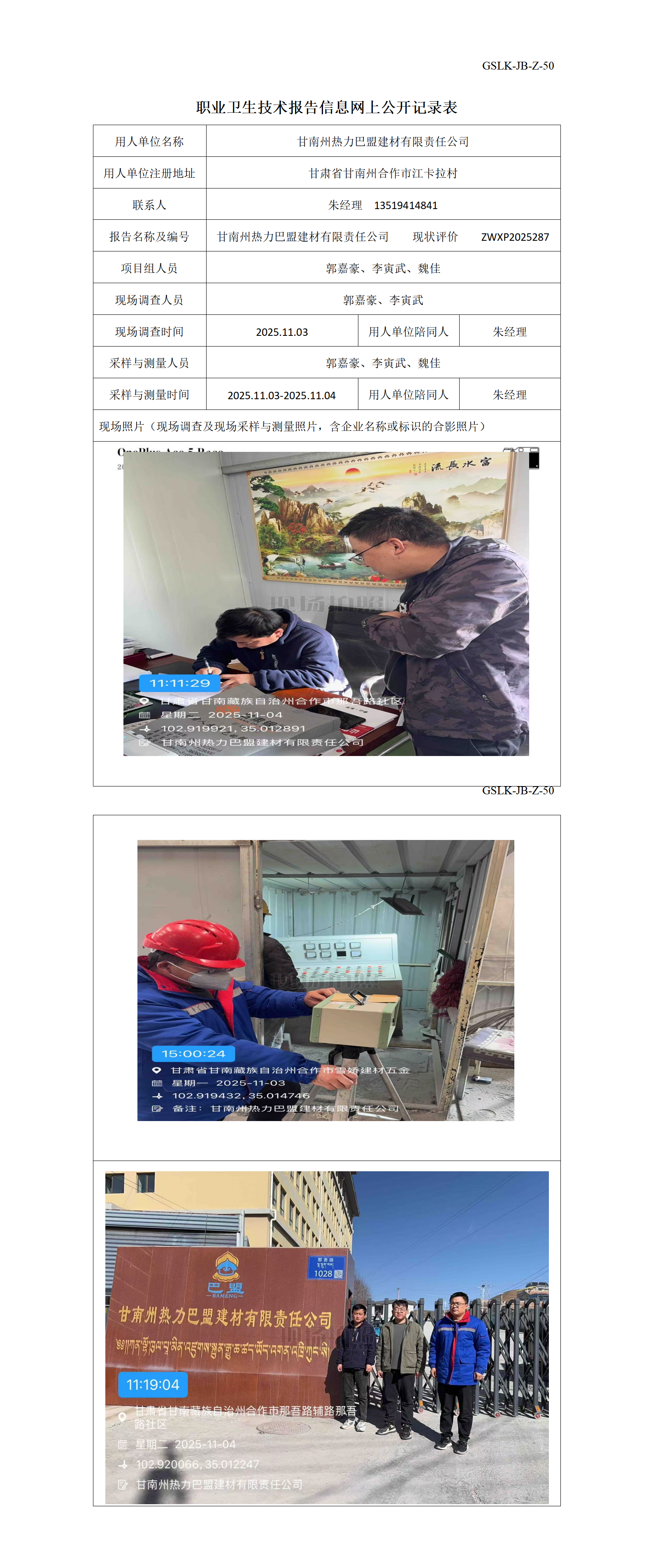甘南州热力巴盟建材有限责任公司职业病现状评价信息公示表