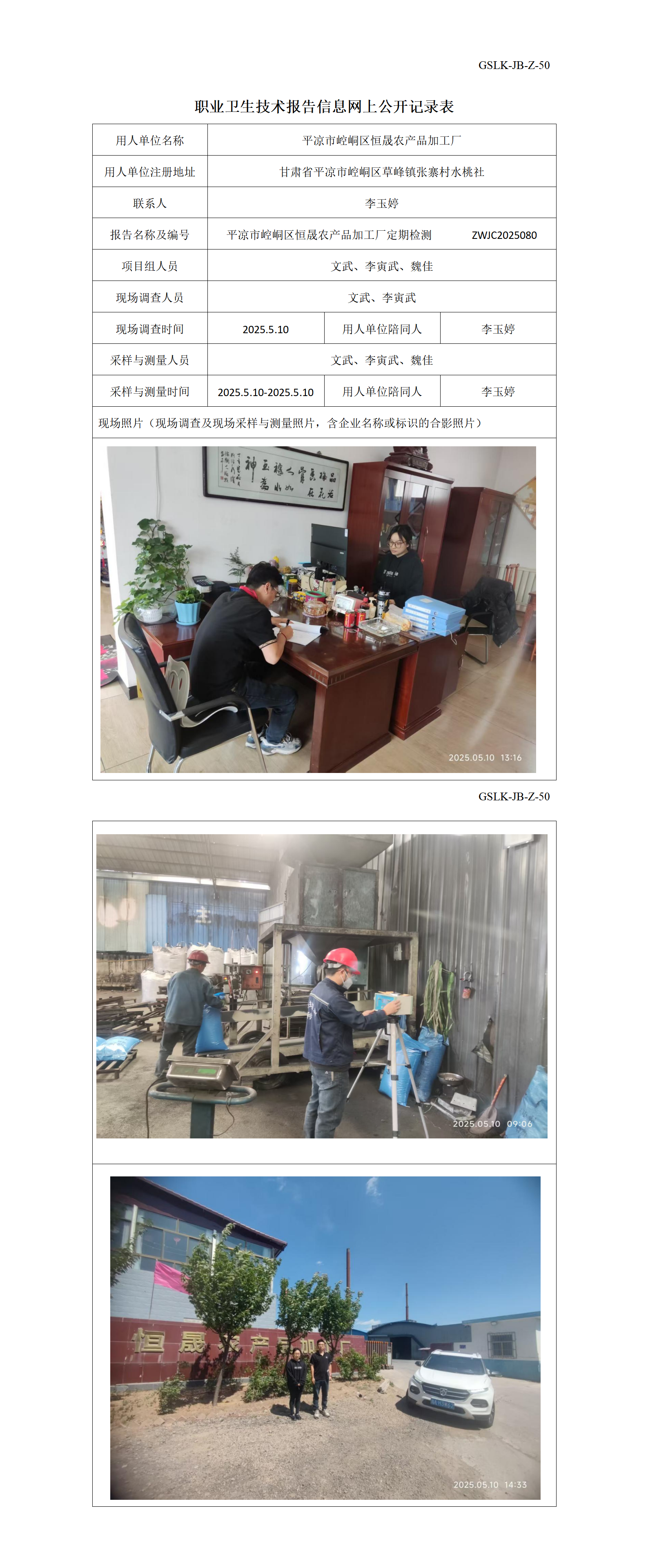 平凉市崆峒区恒晟农产品加工厂定期检测信息公示表