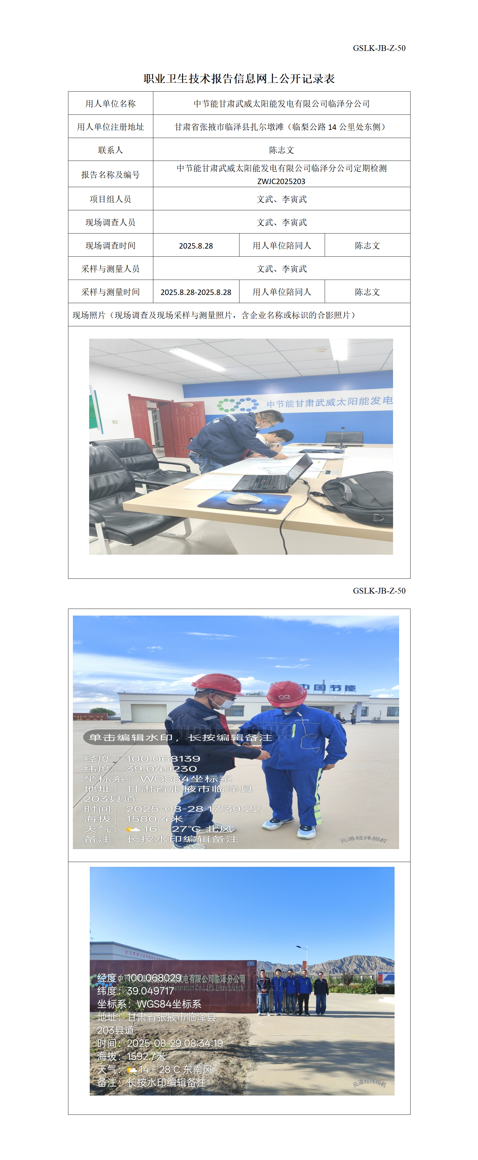 中节能甘肃武威太阳能发电有限公司临泽分公司定期检测信息公示表