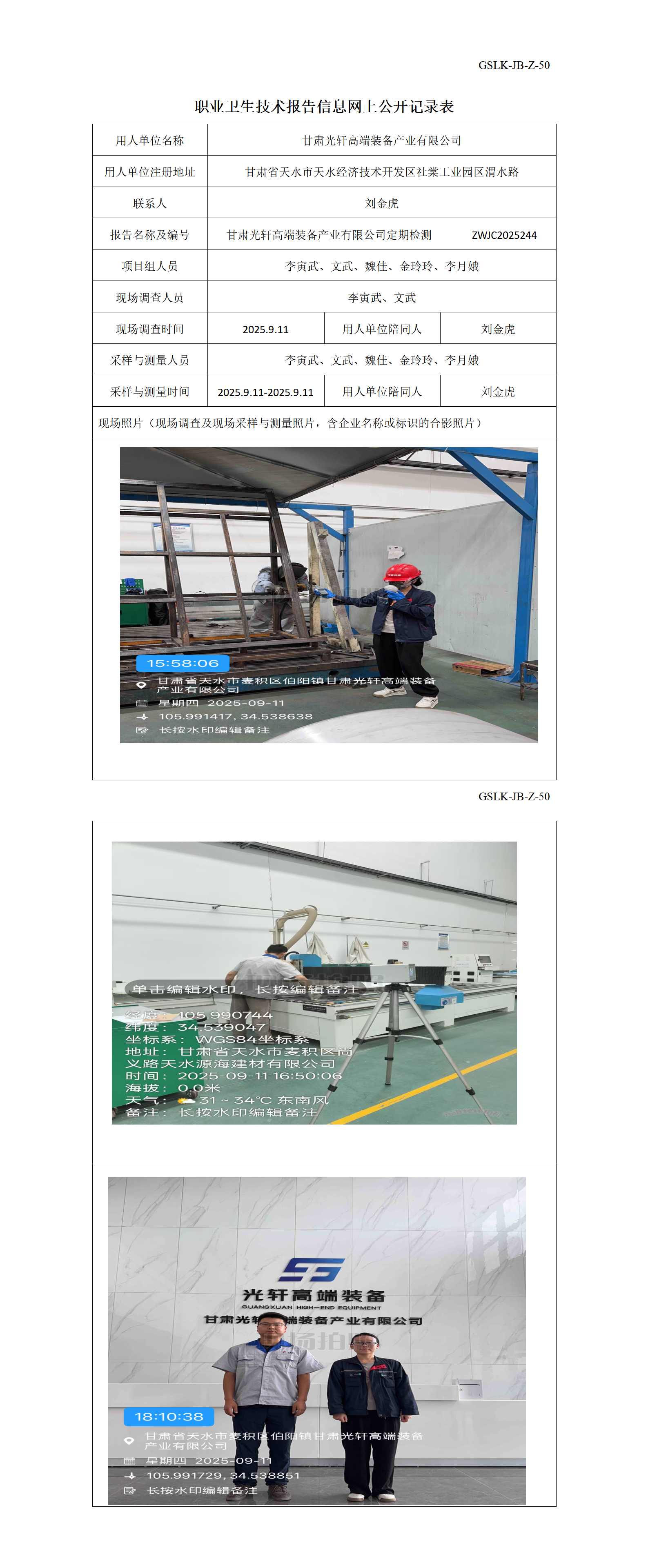 甘肃光轩高端装备产业有限公司定期检测信息公示表