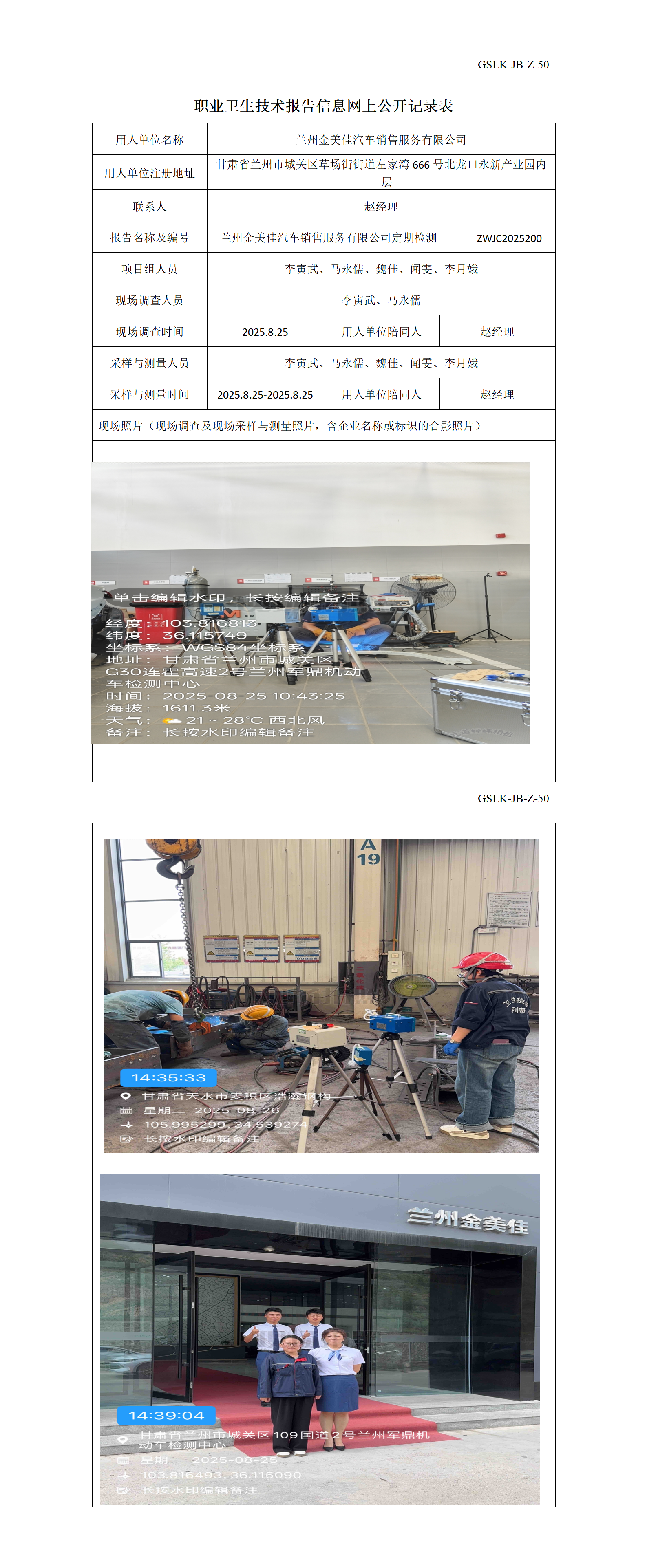 兰州金美佳汽车销售服务有限公司定期检测信息公示表