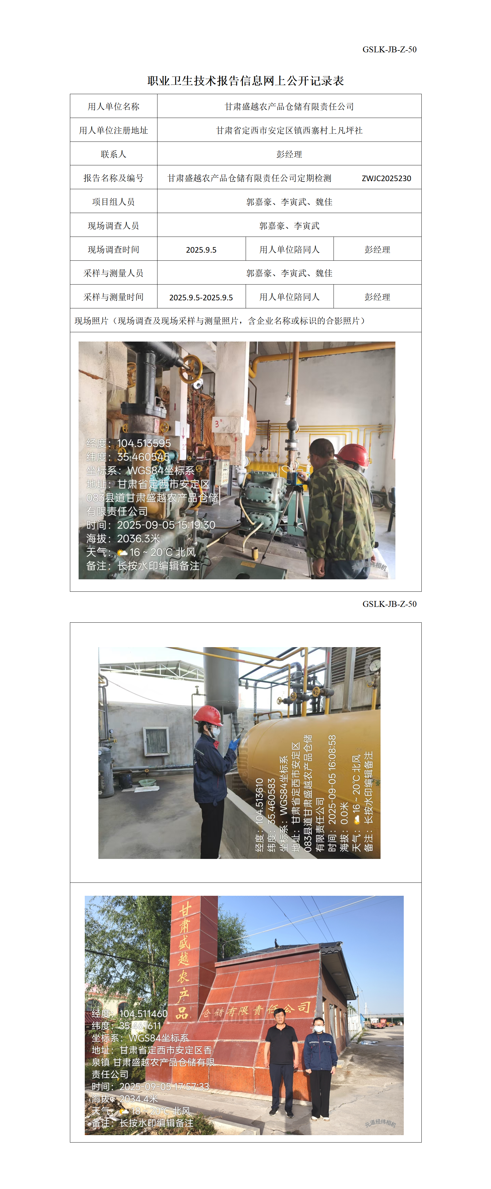甘肃盛越农产品仓储有限责任公司定期检测信息公示表