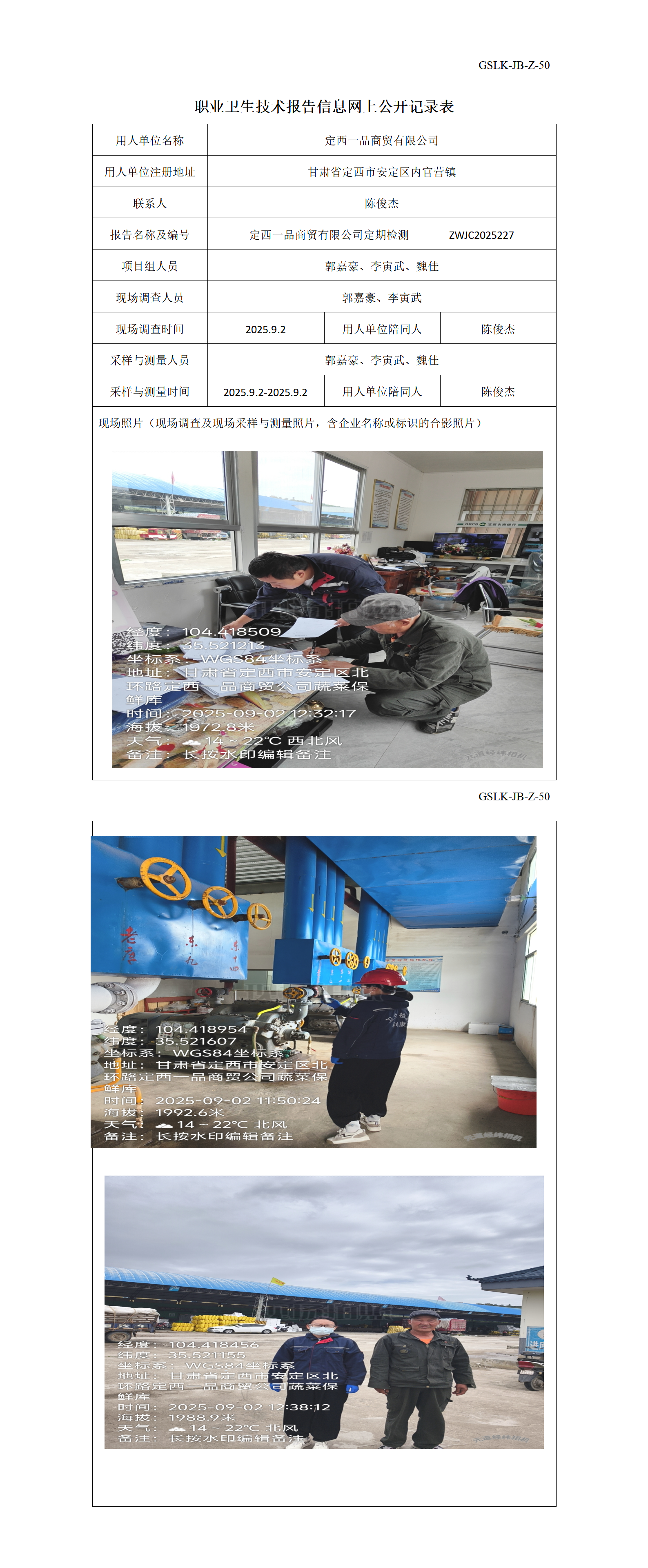 定西一品商贸有限公司定期检测信息公示表
