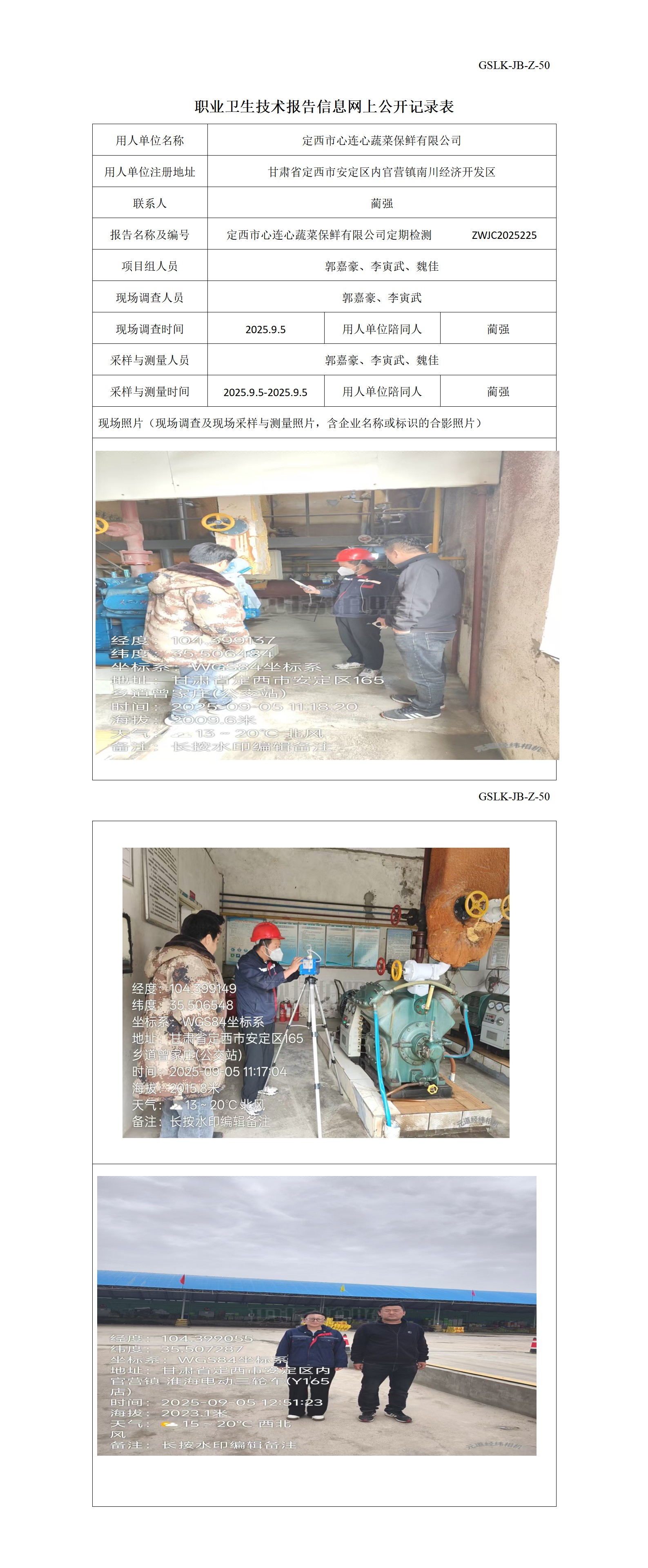 定西市心连心蔬菜保鲜有限公司定期检测信息公示表